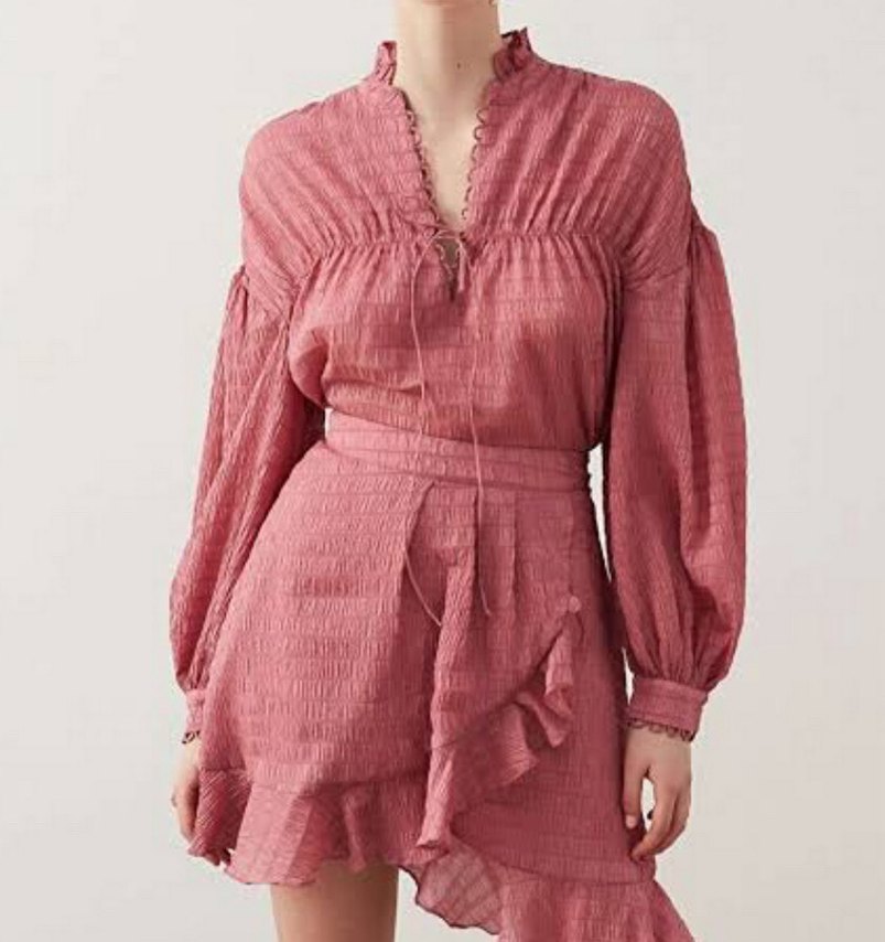 Pembe bol kesim. Uzun kollu yeniden farksız.
