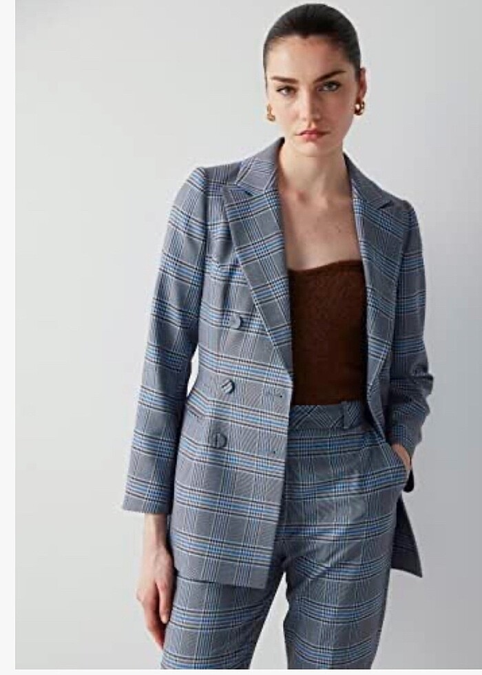 Mavi ekose cigarette pantalon. Sıfır etiketli 36 beden ama geniş kalıp. Amazon’dan alınmıştır beden olmadığı ve iade süresi dolduğu için satılıktır.