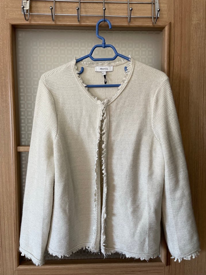 İpekyol bej yünlü simli uç kısımlarında detay olan hırka çok az giyildi bilginize davette iş ortamında giyilebilecek şık bir üst giym