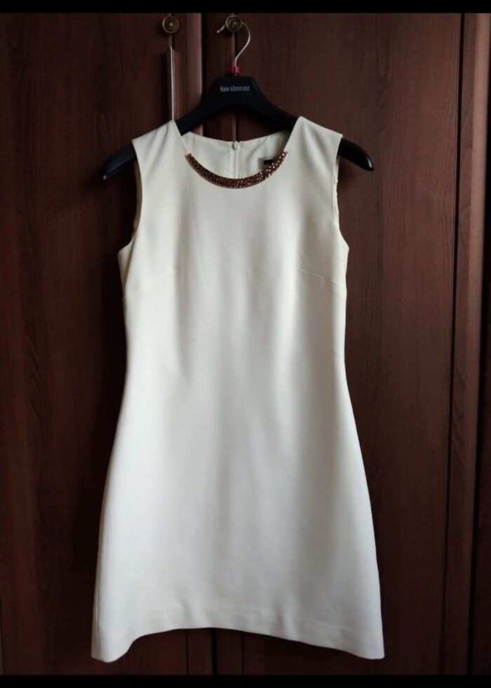 Bir defa kullanıldı hiç bir defosu yoktur elbisenin rengi kırık beyaz