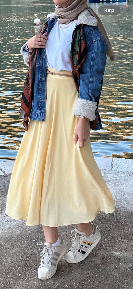Sayılı giyildi, yeni durumda, krep etek, etek ucunda belli olmayan bir leke var fotoğraflara ekledim, etek boyu 75 cm, bel 34 cm