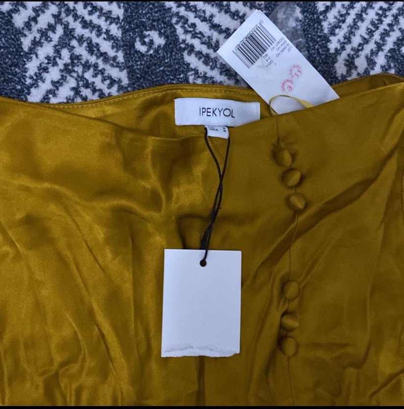 İPEKYOL canlı sarı renkte, düğme detaylı ve pürüzsüz kumaşlıdır. Sıfır etiketli