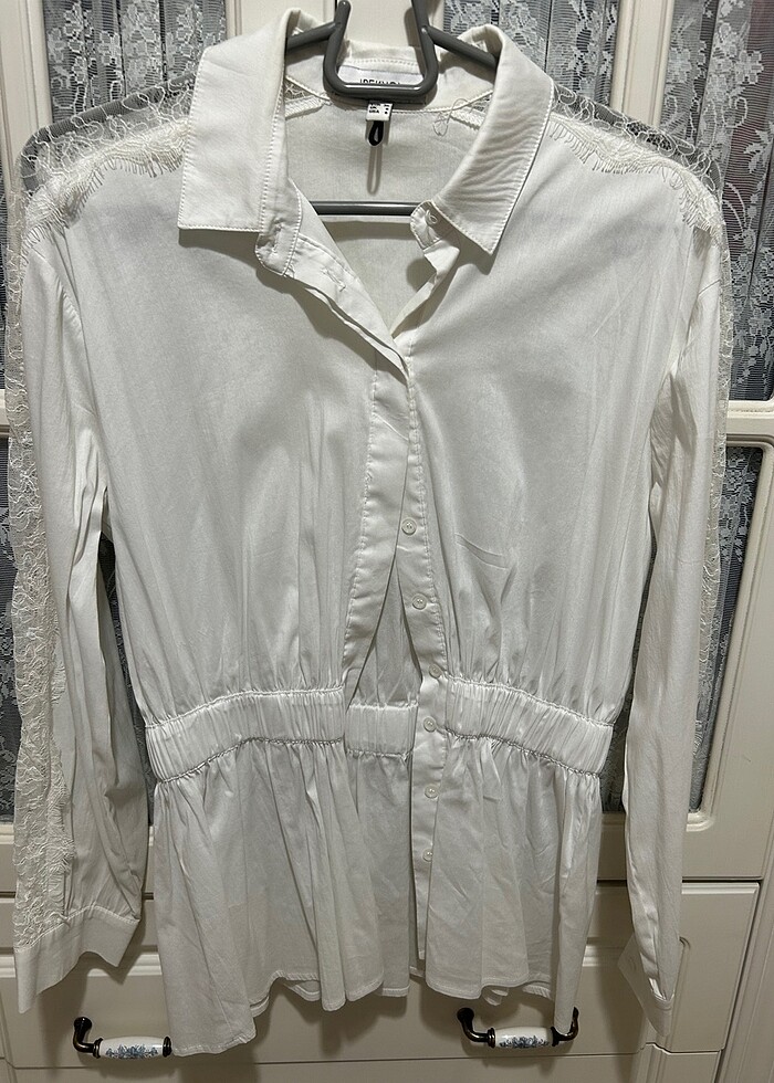 Bel detaylı beyaz gömlek
