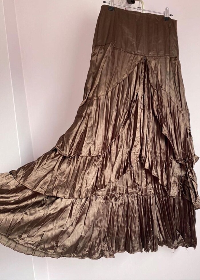 Uygulama üzerinden aldım bedeni olmadığı için satıyorum çok güzel bir etek kumaşı da parlak ipek tafta gibi