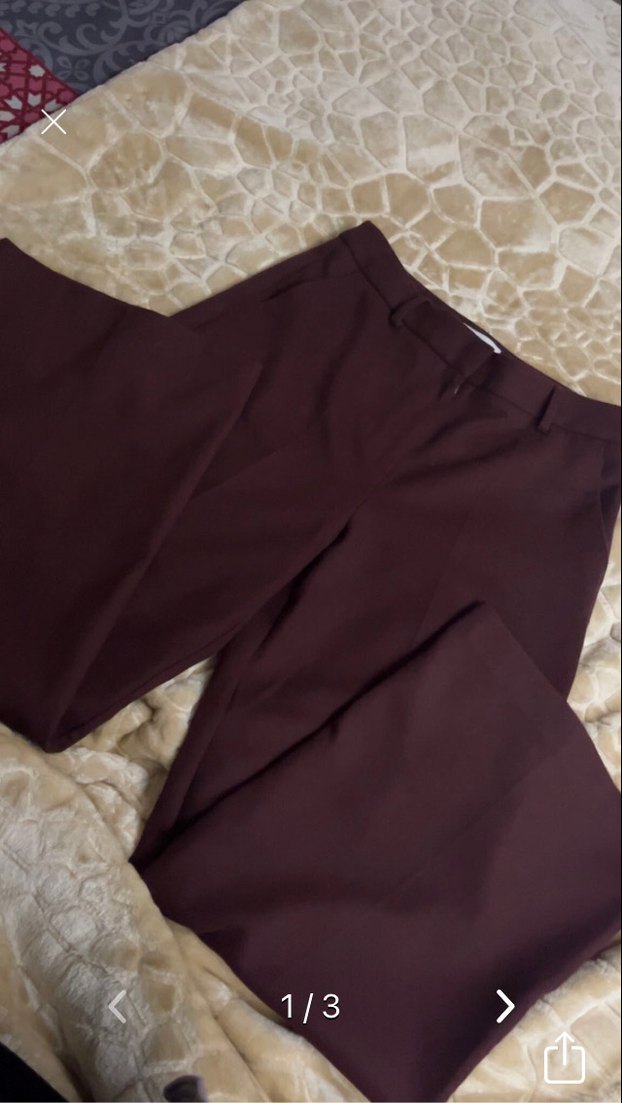Bordo düz kesim, yumuşak dokusu kalın ipeksi kumaştan kadın pantolon. Desensiz, ofis için sade ve şık bir tasarım sunar.