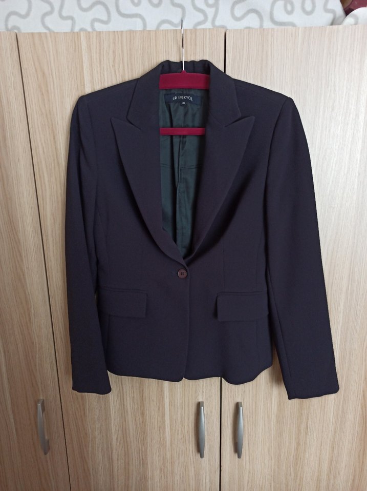 İpekyol marka lacivert kadın ceket, tek düğmeli, 36 beden, çok az giyilmiştir,omuzdan alta 60 cm, bir omuzdan (vatkadan) diğerine 41 cm , kol omuzdan bileğe 63 cm