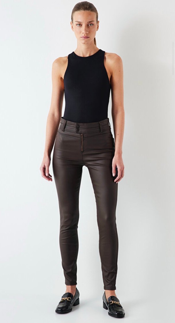 İpekyol Kahverengi Mumlu Kadın Pantolon