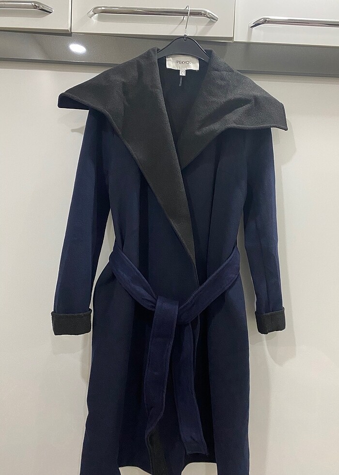 İpekyol Kaşe kaban çok az giyildi anneme kilo aldığı için dar geliyor içi siyah aynı şekilde bilek kısmı ve yakasıda siyahtır kendi rengi ise lacivert hiç bir defosu yok tüylenme bile yoktur