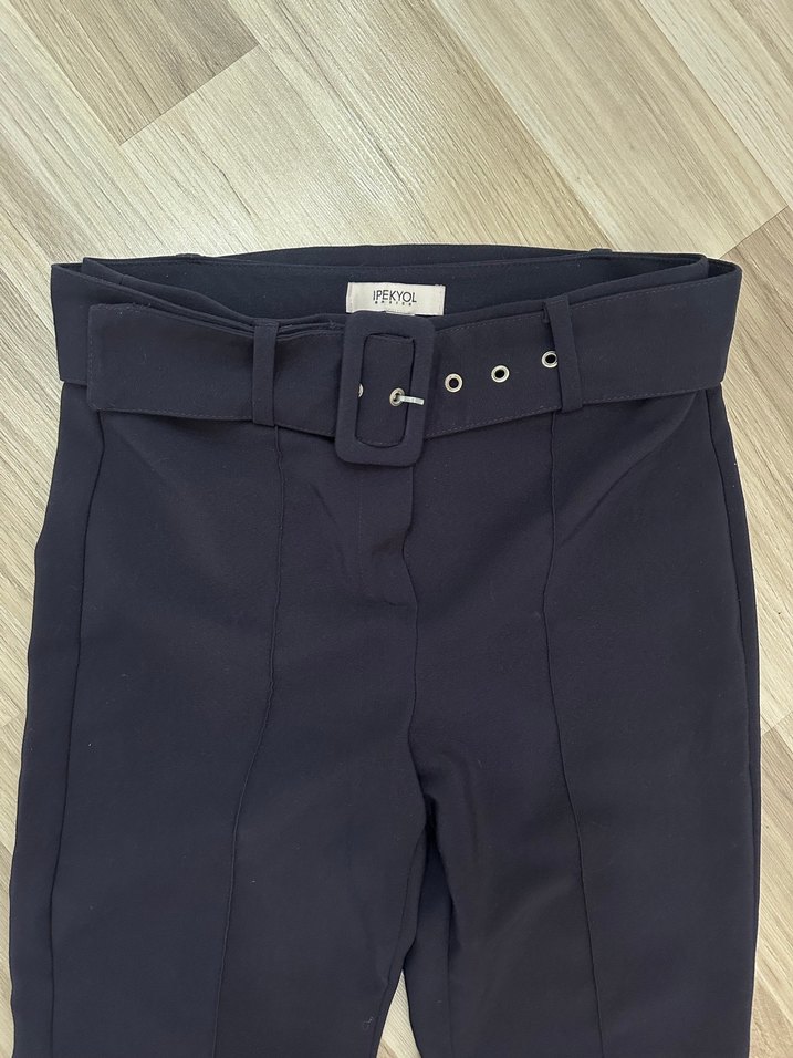 İpekyol Kemerli Lacivert Kadın Kumaş Pantolon