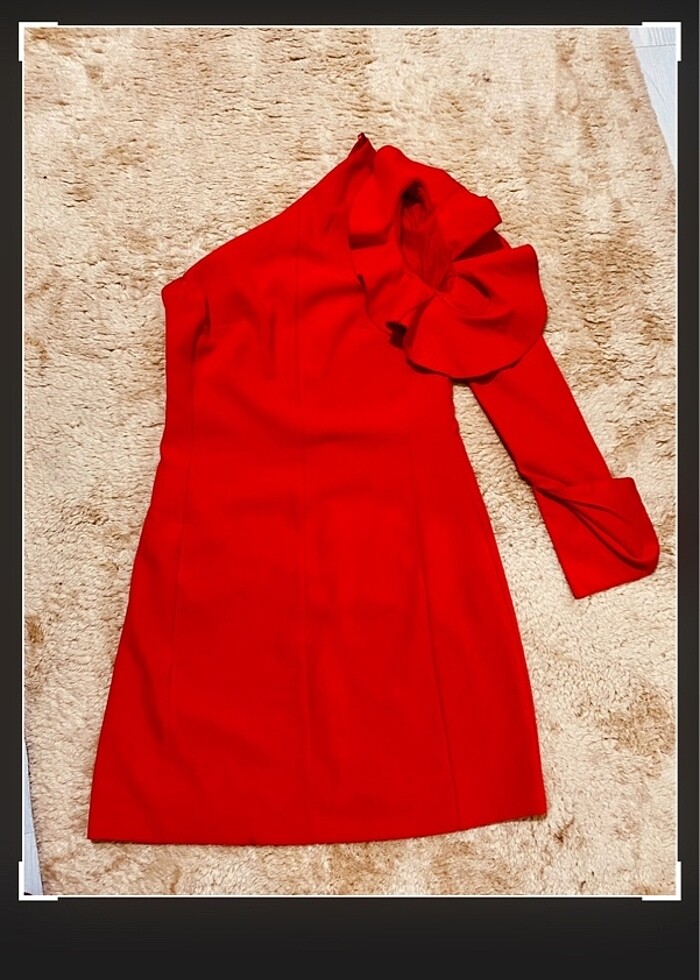 tek kol omuz fırfır detaylı elbise 1 kez giyildi