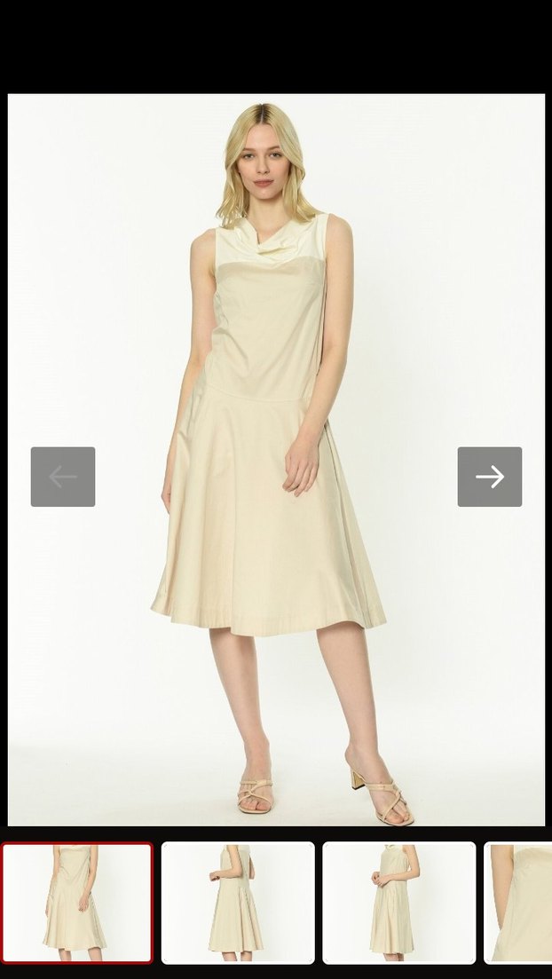 İPEKYOL Kolsuz Toprak Kloş Elbise İki renk renk, dökümlü yaka ve kolsuz kloş elbise. Düz ve yumuşak dokuma kumaştan, ofis için uygun şık ve rahat bir görünüme sahiptir. Sırttan fermuarlı, cepli, 38 beden: iki kol arası 45 cm, bel 48 cm, boy 110 cm.