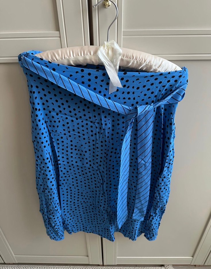 Mavi renkte, drapeli ve bol kesim. Yumuşak dokulu kumaştan, bağlamalı detaylı, bohem ve Paris tarzı. Günlük kullanıma uygun. İpekyol marka