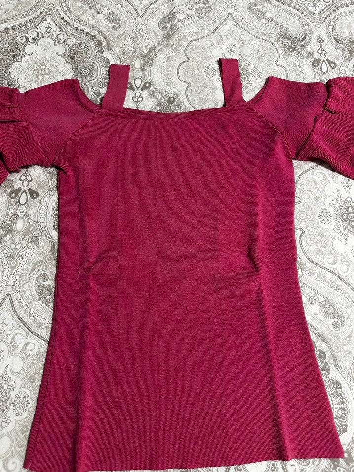 yuvarlak yakalı ve kısa kollu, fırfırlı detaylarla renkli ve dar kesim bir sokak tarzı sunar. Pürüzsüz sentetik kumaştan yapılmıştır.