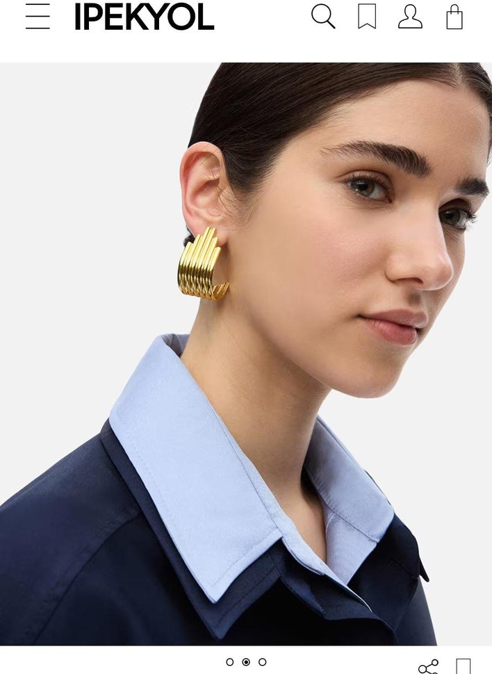 IPEKYOL'un parlak altın renkli, pile detaylı mini küpeleri, çağdaş ve şık bir ofis görünümü için uygundur. ✨