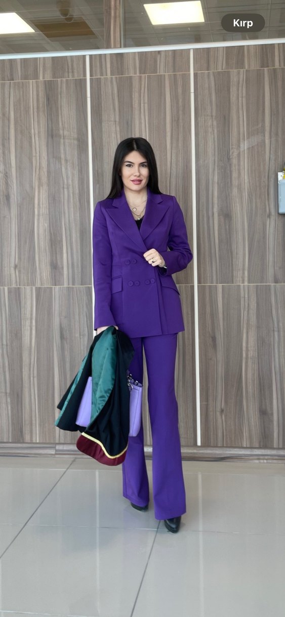 Mor renkli, kumaş pantolon. Ceketi ayrı satılmaktadır. Bir kez giyildi