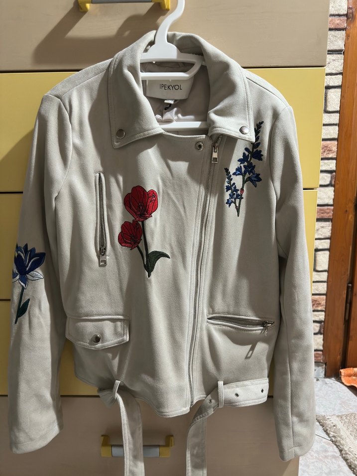 İpekyol Nakışlı Beyaz Süet Kadın Deri Ceket