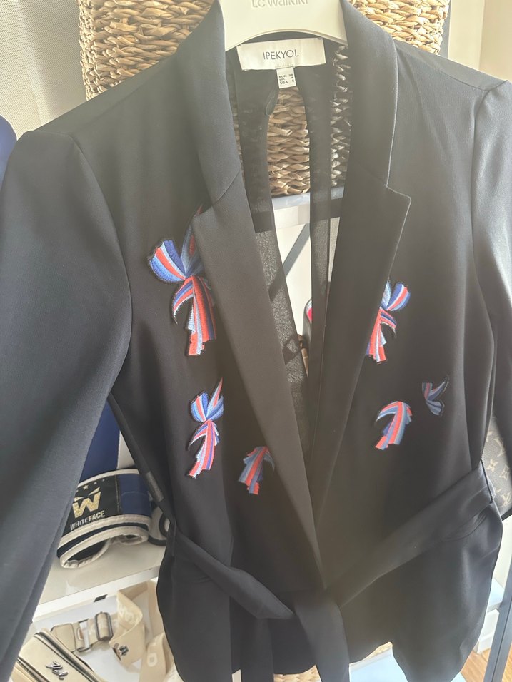 İpekyol marka, uzun kesim, çok renkli nakış detaylı, düğmeli kadın blazer. Strappy kollu, regular fit ve sentetik kumaştan, Paris sokak modası ve ofis şıklığını birleştirir.