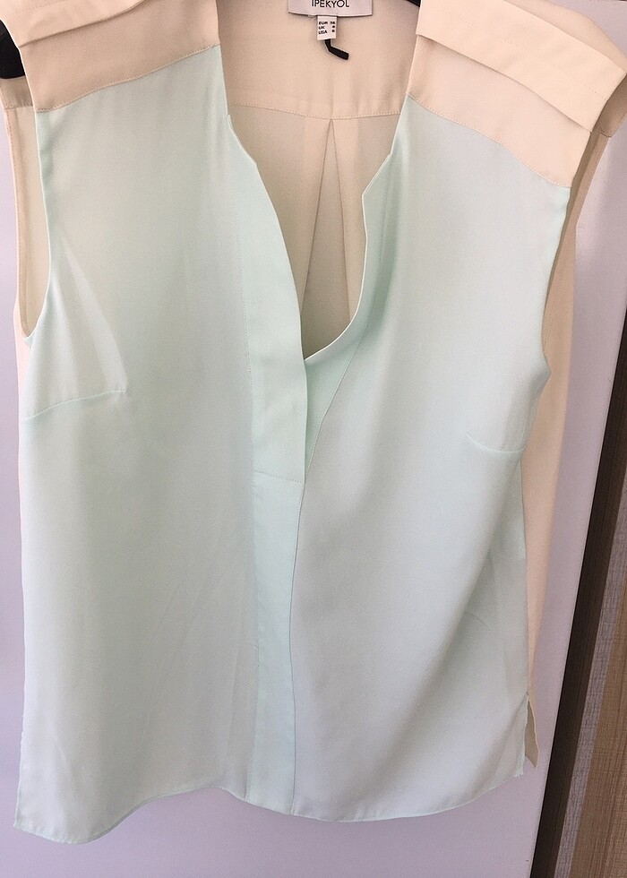 Sıfır ayarında,kolsuz dökümlü bluz.iki kol arası:54cm boy:69cm