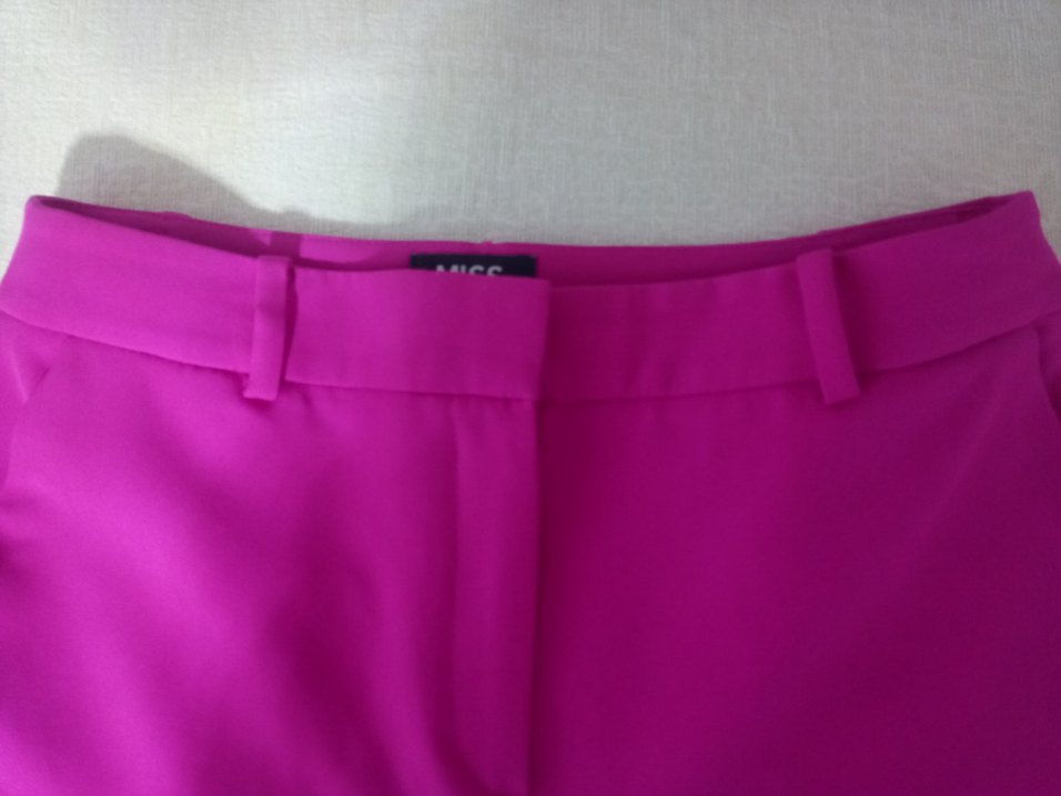 Düğmeli,krep dokulu, pembe renkte, normal boy midi pantolon. Rahat kesimli ve desensiz, ofis kullanımı için uygun.
