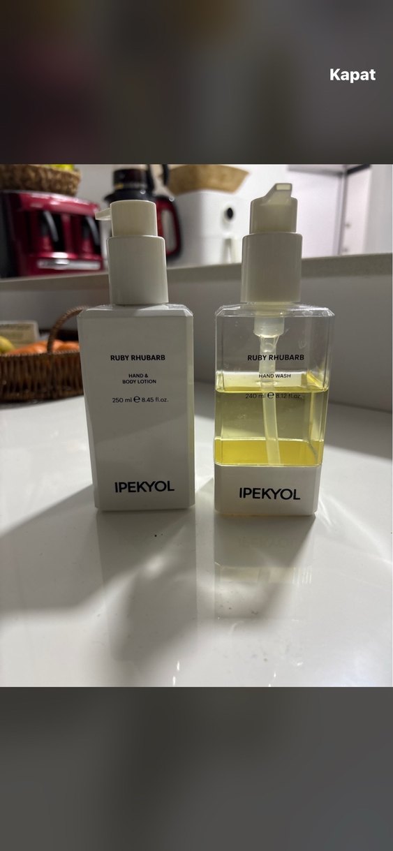 İPEKYOL Ruby Rhubarb el ve vücut losyonu ile el yıkama seti, pompalı şişelerde nazik temizlik ve nemlendirme sağlar. İkisinin de yarısı doludur ve kutusuzdur. Dış ambalajları sert plastikten yapılmış ama kırılgandır