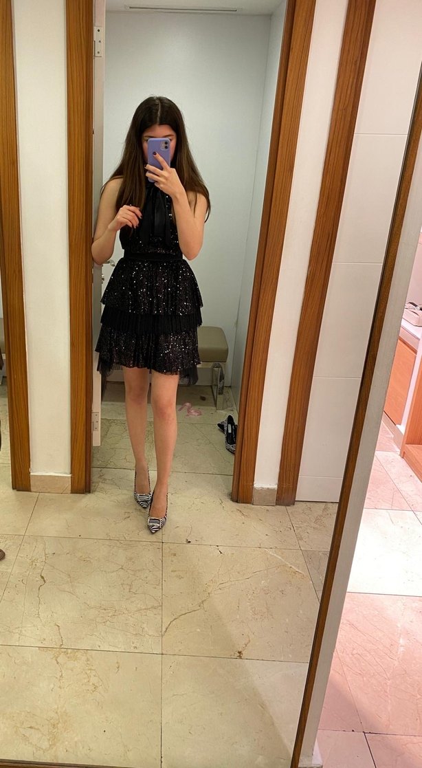 Özel bir gün için almıştım ancak giyemedim. Boynunda saten bağlama detayı var. Etek boyunu ilk görselde işaretlediğim şekilde kısalttım. Boyum 1.74, bana mini olmuyor biraz uzun bi elbise. Onu göz önünde bulundurarak alın.