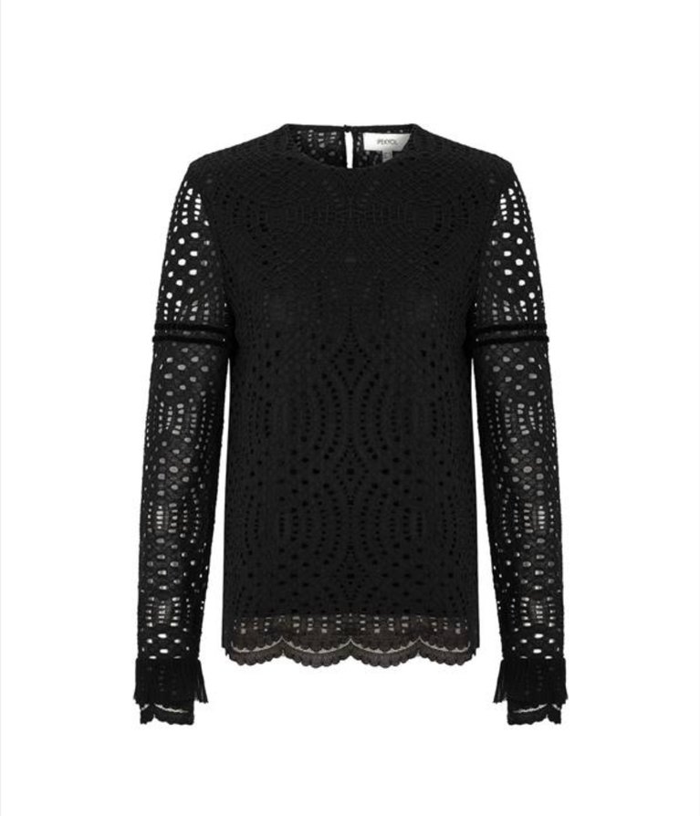 İpekyol Siyah Dantel İşlemeli Uzun Kollu Bluz