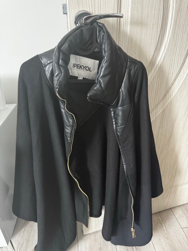 Siyah deri detaylı orta boy salaş panço hem spor hem özel günlerde tercih edilebilir. Sıfıra yakın ürün tertemiz