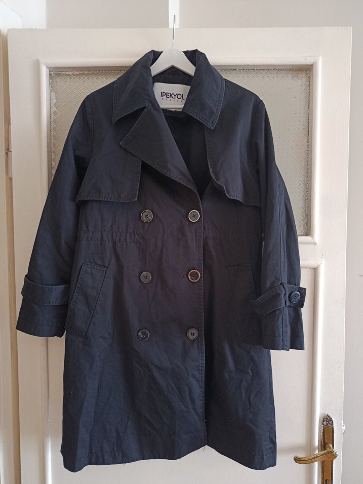 İPEKYOL Siyah Kadın Keten Midi Trençkot 38 beden