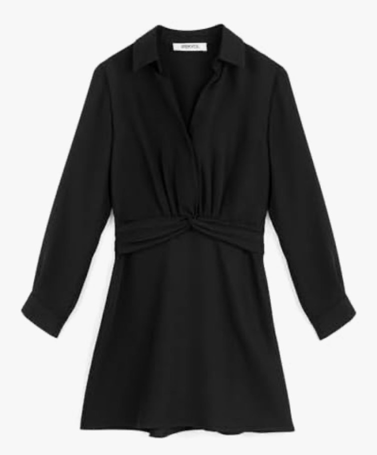 İpekyol siyah 40 beden midi boy, uzun kollu elbise, bele oturan kesim