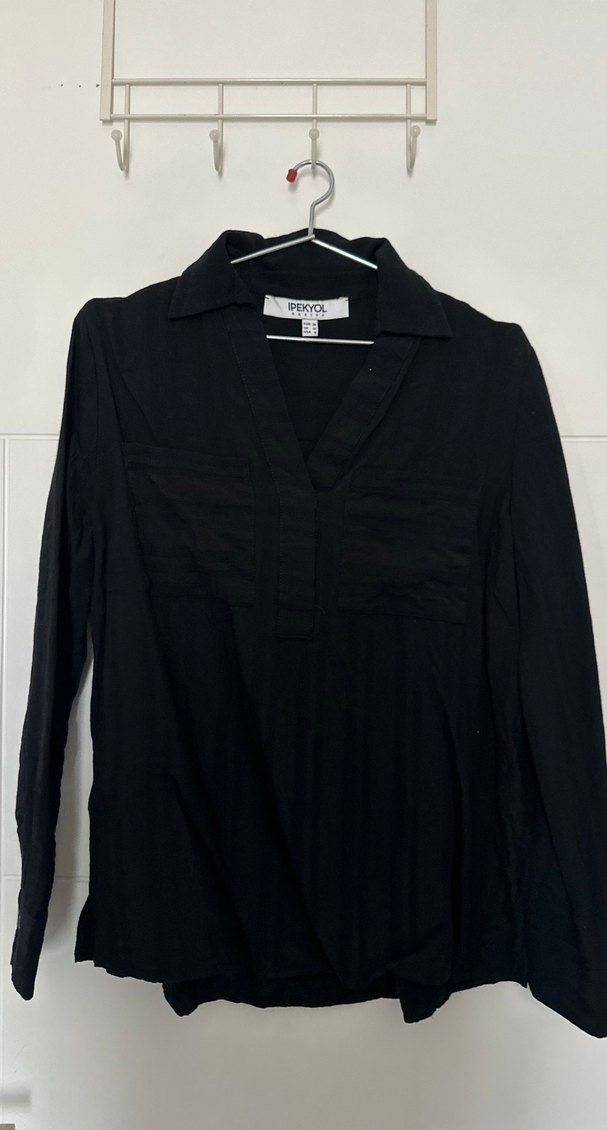 İpekyol Siyah pamuklu Uzun Kollu Düğmeli Kadın Gömlek