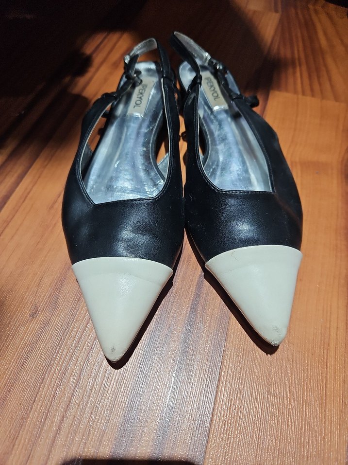 #ipekyol Tokalı Siyah Beyaz Stiletto Kadın Ayakkabı