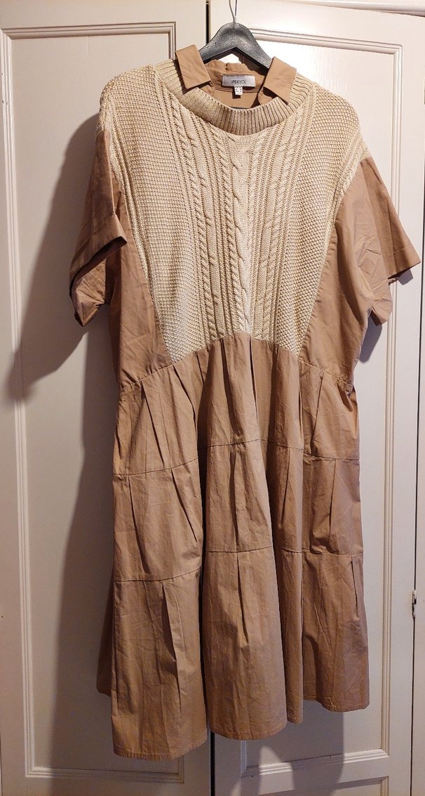 Ürün sıfır hiç giyilmedi 42 beden 44 bedene rahat olur biraz kalıbı geniş çok güzel kumaş ve triko detaylı tarz bir elbise hiçbir sorunu yoktur hediye alinabilinir.günlük cok şık giymediğim için satışta mağazasından alındı.iade almiyorum lütfen ölçülerine dikkatli inceleyin KOLTUK ALTINDAN 60 CM ELBISE BOYU 105 CM BEDEN 42 DIR. dediğim gibi 42 bedene ve 44 bedene tam olur kemerlede kullanabilirsiniz kendi kemeri yok orjinali böyle Teşekkürler