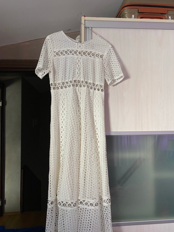 Pamuklu, kısa kollu, V yakalı, nakışlı dantel detaylı, bol kesim beyaz bohem uzun elbise, günlük kullanım için uygundur. orjinal ipekyol ürünüdür.