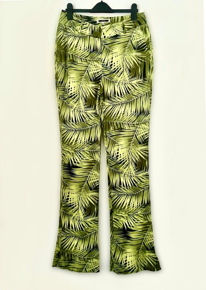 Yüzde yüz viskoz, hafif parlak kumaş Palmiye yaprak desenli Boyu oldukça uzundur; ölçüler fotograflarda #ipekyol #ipekyolpantolon #kumaşpantolon #kadınpantolon #uzunpantolon #desenlipantolon #viskozpantolon