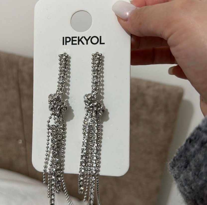 IPEKYOL markalı, zincir detaylı gri midi küpeler. Minimalist ve rock punk tarzıyla günlük ve düğün kullanımı için uygundur.