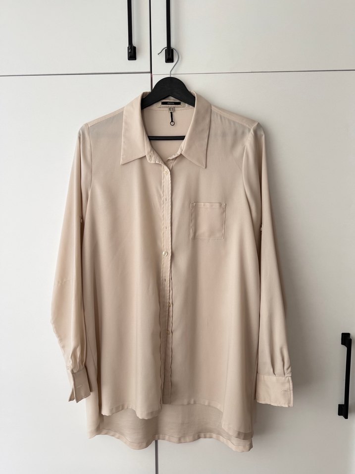 Bej renkte, uzun kollu, yakalı ve saten dokulu bu kadın gömleği, rahat kesimi ve minimal tarzıyla ofis kullanımı için uygundur. Sağ kol kısmında ip çekilmesi vardır, 4. Fotoda ön kısımda ufak bir leke vardır ama kosla ile yıkanınca geçer, şu an yıkayamadığım için bu şekilde çekim yapıldı ama kosla ile yıkanıp gönderim sağlanır