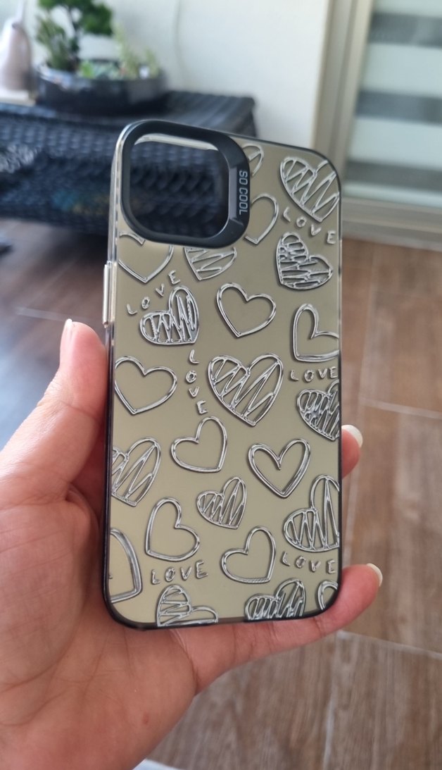 Gri siyah , parlak yüzeyli ve kalp desenli bu telefon kılıfı, street wear tarzıyla dikkat çekiyor. ❤️