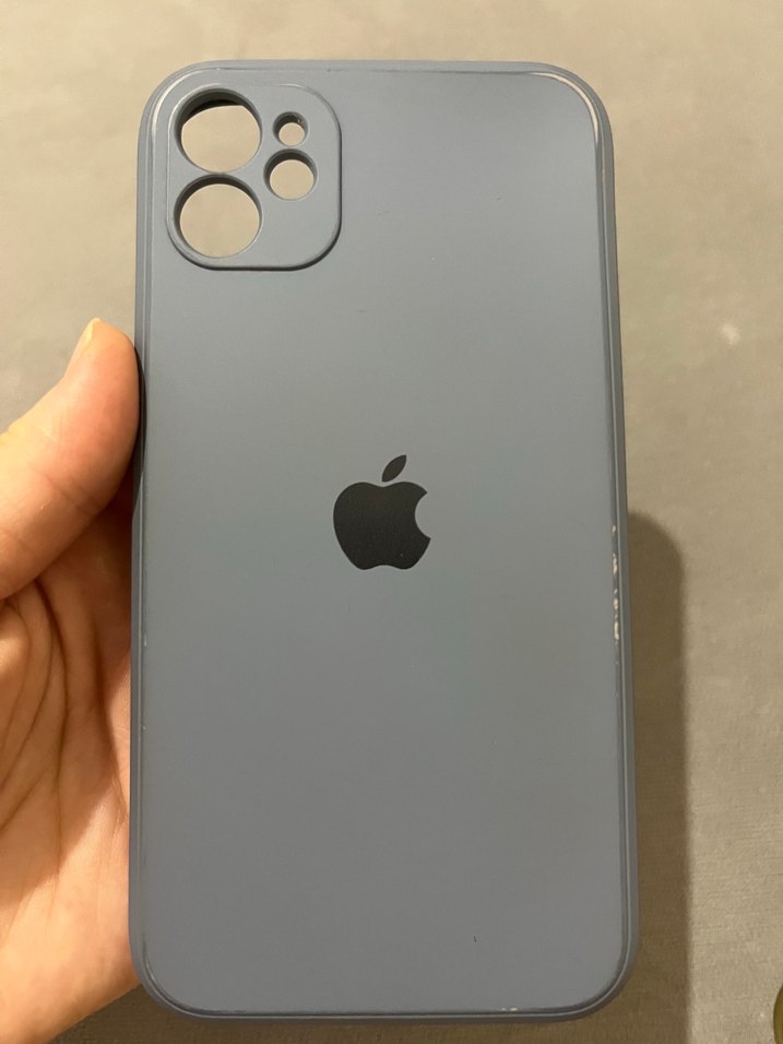 Kamera delikleri bulunan, pürüzsüz yüzeyli gri Apple iPhone kılıfı. Koruma sağlar ve şık bir görünüm sunar.