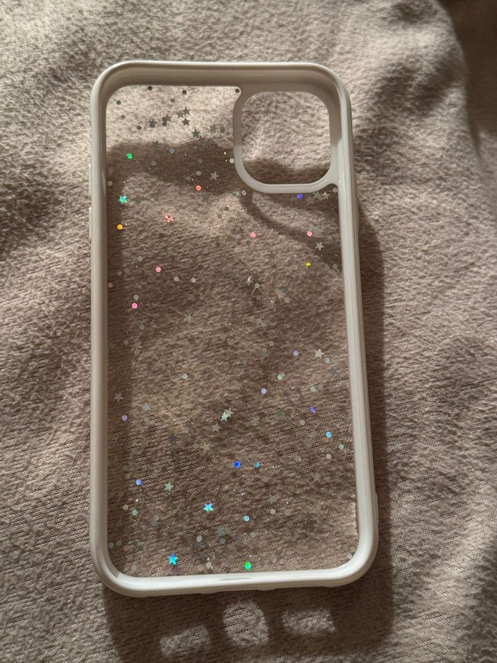 Beyaz renkli, hafif parıltılı ve yıldız şekilli simli kılıf, az kullanıldı ve renginde bir değişim yok (sararma vb)