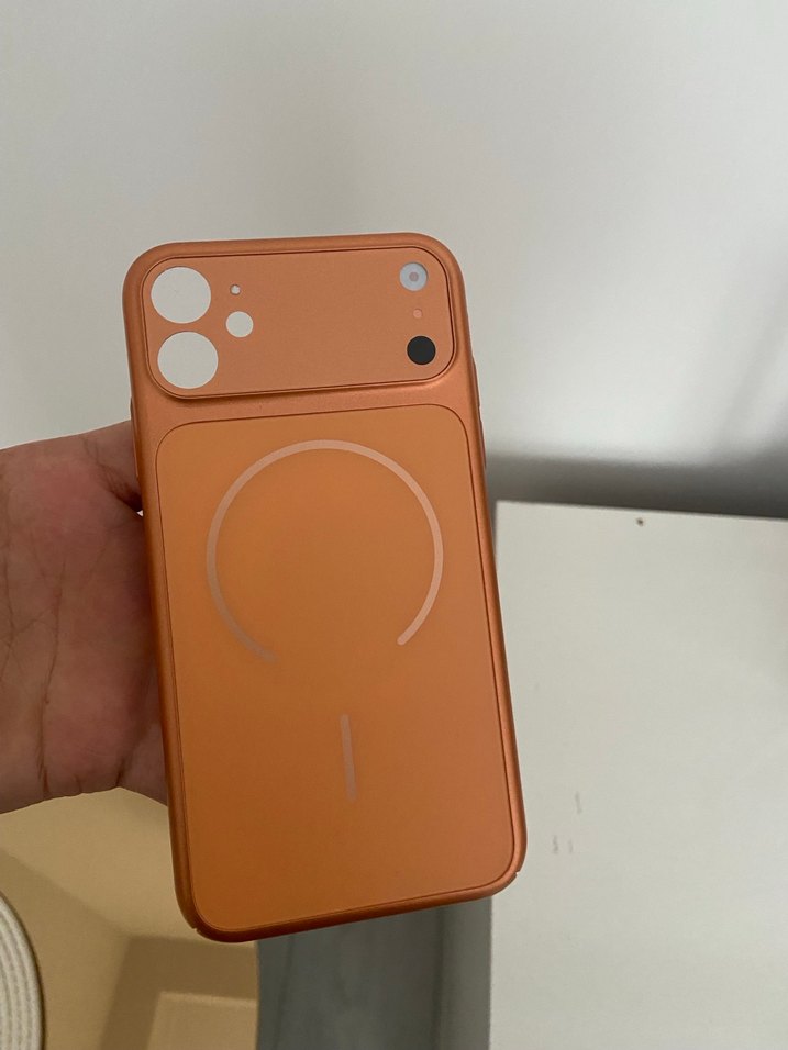 Turuncu renkli, çağdaş tasarımlı telefon kılıfı. Cihazınıza şık ve pürüzsüz bir görünüm kazandırır. İphone 17 görüntüsüne sahip