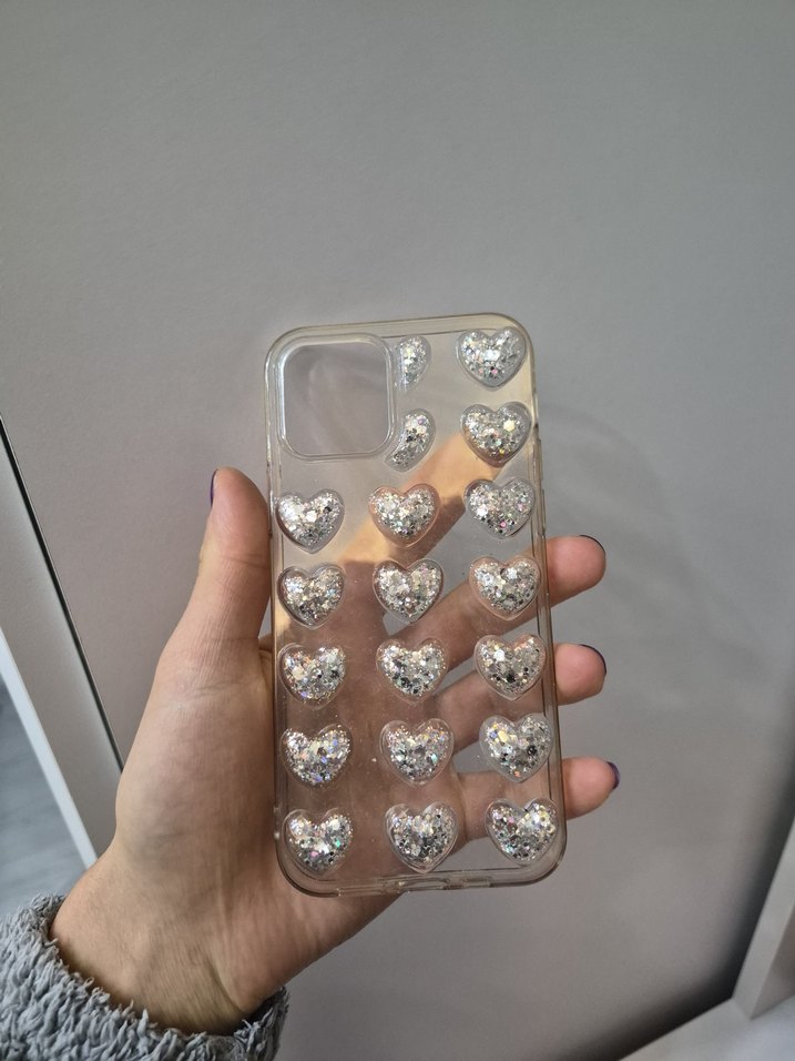 Bu bej telefon kılıfı, üzeri payetli çok sayıda kalp deseni içerir. Sokak stili için uygun, açık renk tonlarına sahiptir. Az kullanıldı. Profilimdeki diğer kılıfları da düşürseniz toplu alımda indirim yaparım.