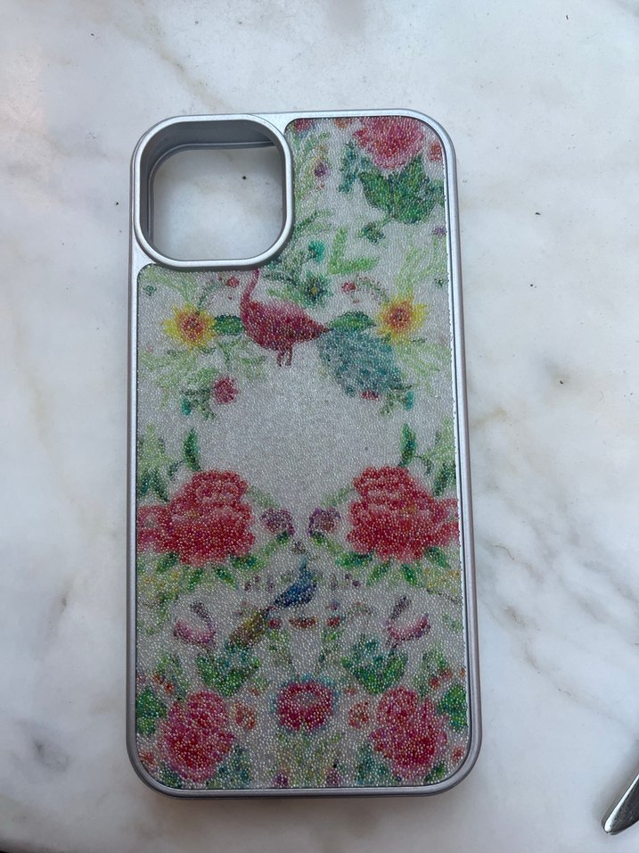 Bohem tarzda, payetli çok renkli çiçek ve kuş desenleriyle süslenmiş telefon kılıfı, cihazınıza canlı ve dokulu bir görünüm kazandırır.