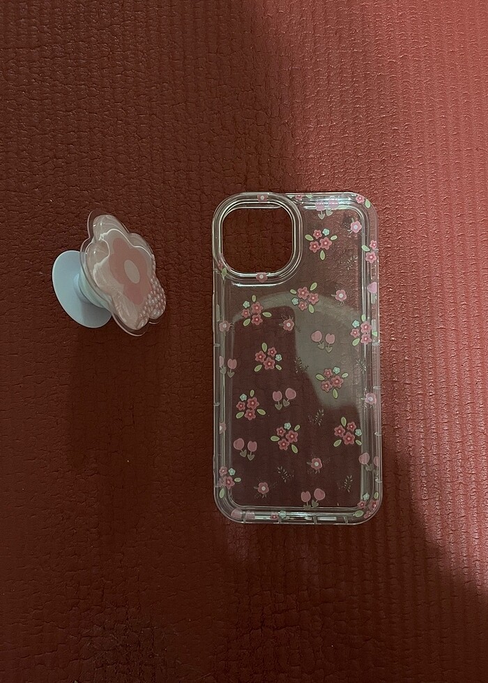 Şeffaf pembe çiçekli popsocketli kılıf TOPLU ALIMA İNDİRİM