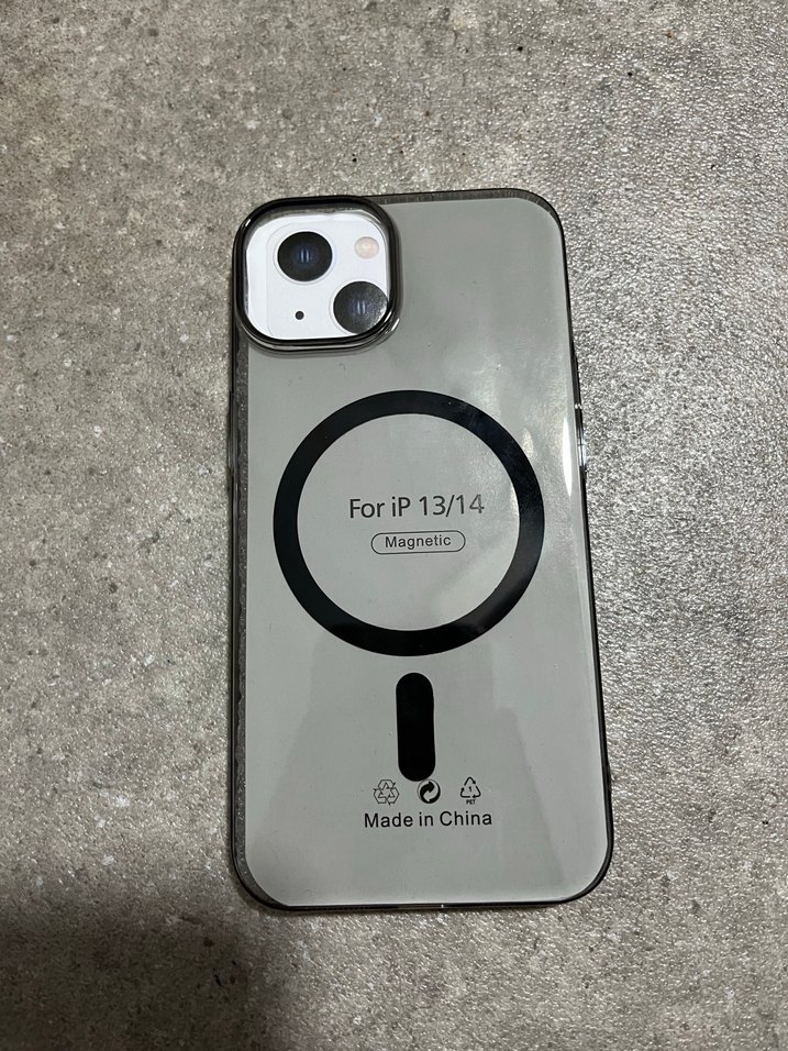 iPhone 13/14 için düğmeli, manyetik özellikli gri telefon kılıfı. Çin'de üretilmiştir. hic kullanılmamıştır