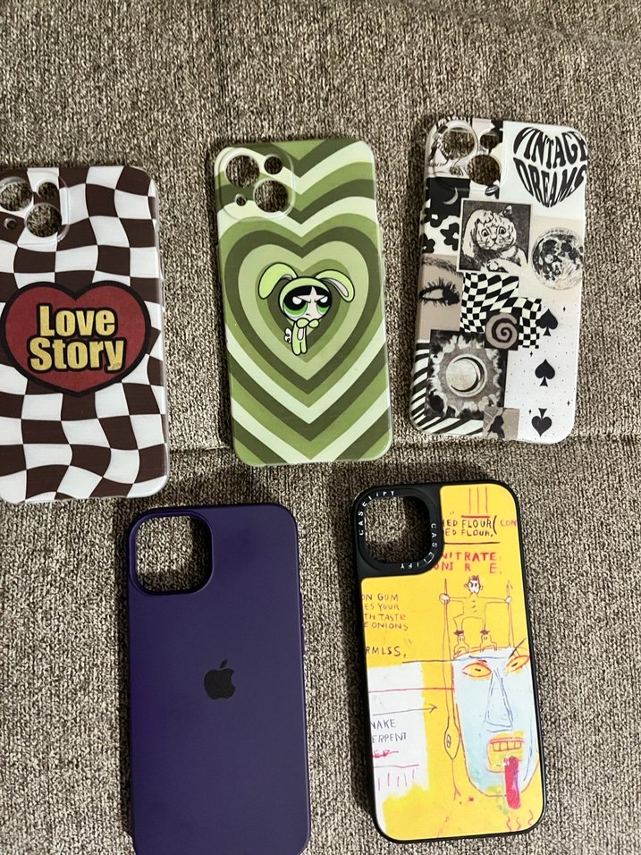 detaylı, çok renkli pop kültür temalı telefon kılıfları. Bazılarında 'Story' ve 'Love' yazıları bulunur. Koyu renkli tarzlar için uygundur. Tane fiyatıdır