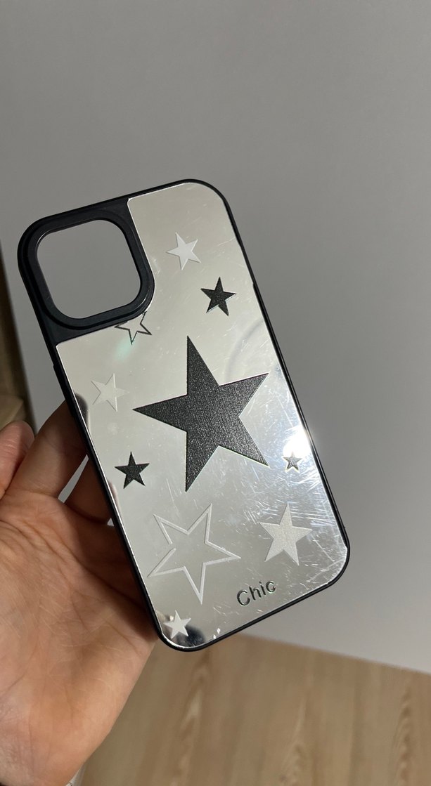 Parlak gri renkte, streetwear tarzında yıldız desenli ve "Chic" yazılı telefon kılıfı. Şık ve parlak bir görünüme sahiptir.