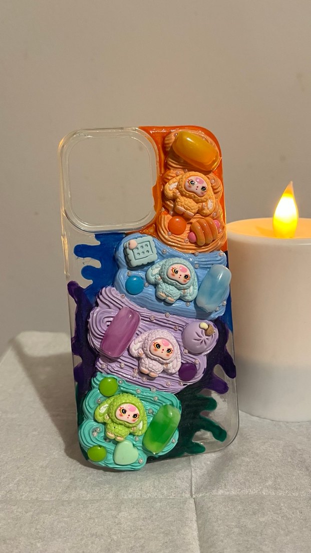 Bu telefon kılıfı, pastel renkler ve boncuklu süslemelerle pop kültür figürleri içerir, neşeli ve renkli bir tasarım sunar. Ürünler tamamen el emeği ile üretilmiştir Kore tarzını yansıtmaktadır Krema deseni ile hazırlanmıştır İPhone 13 Pro ile uyumludur
