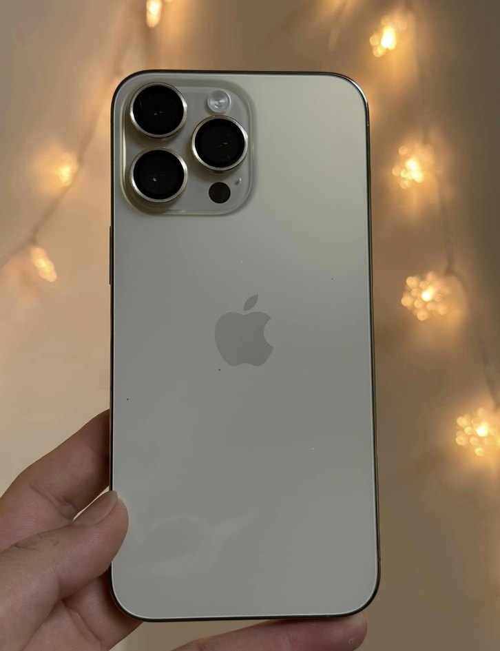 Üçlü kamera sistemi ve şık, pürüzsüz yüzeyi olan açık bej renkli iPhone.