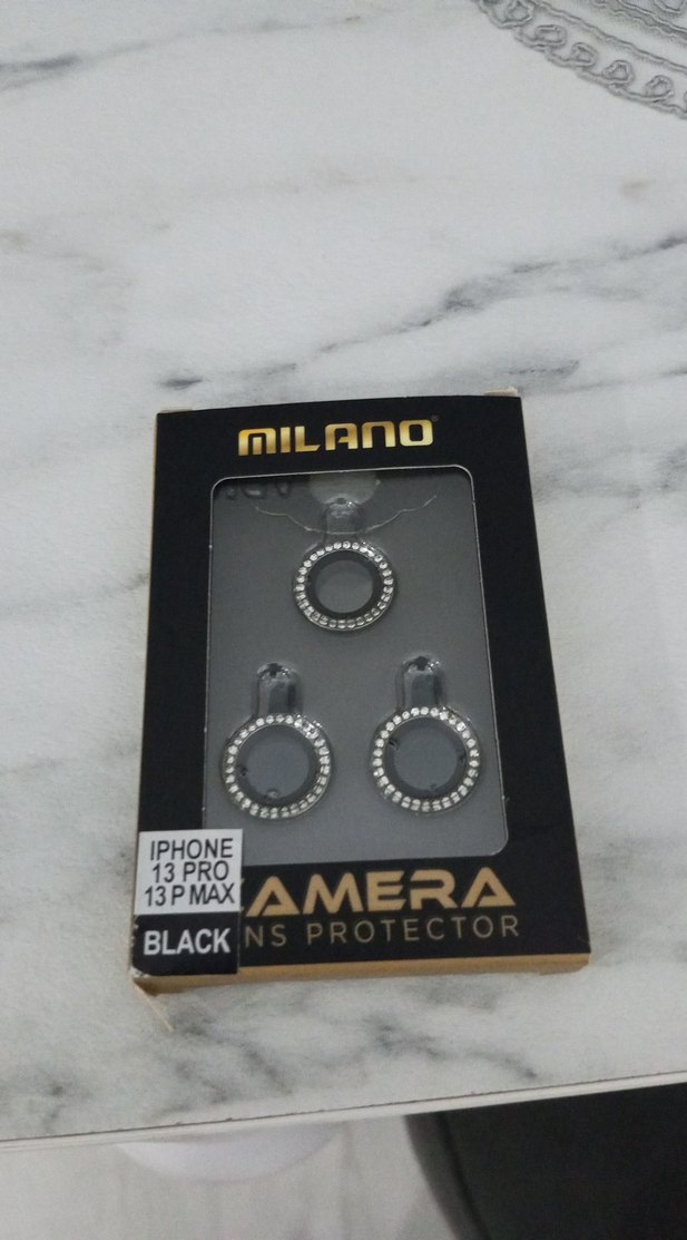 Milano markasına ait siyah iPhone 13 Pro ve 13 Pro Max kamera lens koruyucuları, şık tasarımlı ve koruma sağlar.