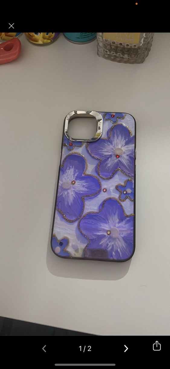 Parlak mor renkte, renkli bohem çiçek desenleri ve süslemelerle telefonunuzu hareketlendiren kılıf.
